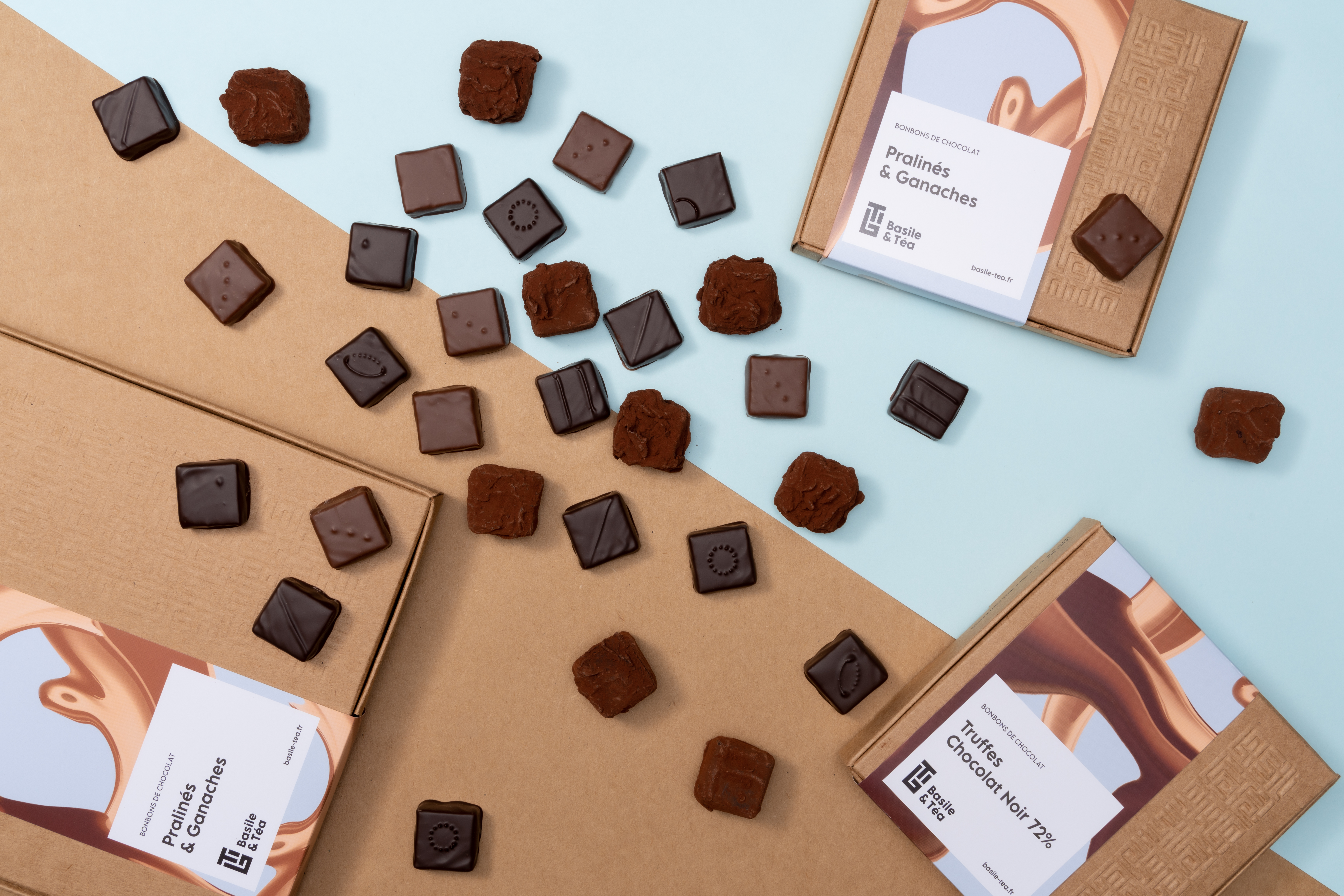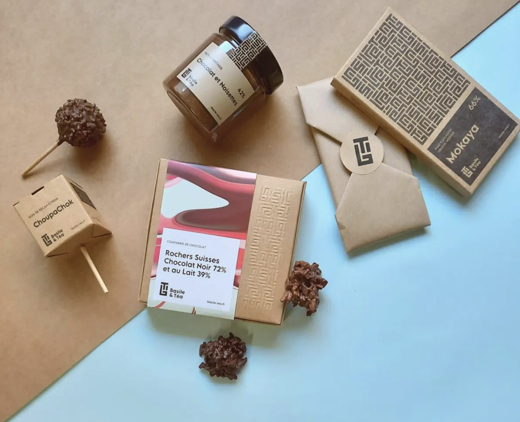 La chocolaterie Basile et Téa leur offre une solution toute aussi délicieuse qu’écoresponsable : des chocolats d’exception fabriqués de façon artisanale avec des ingrédients de grande qualité, sans additif de synthèse, et conditionnés dans des emballages sans plastique.