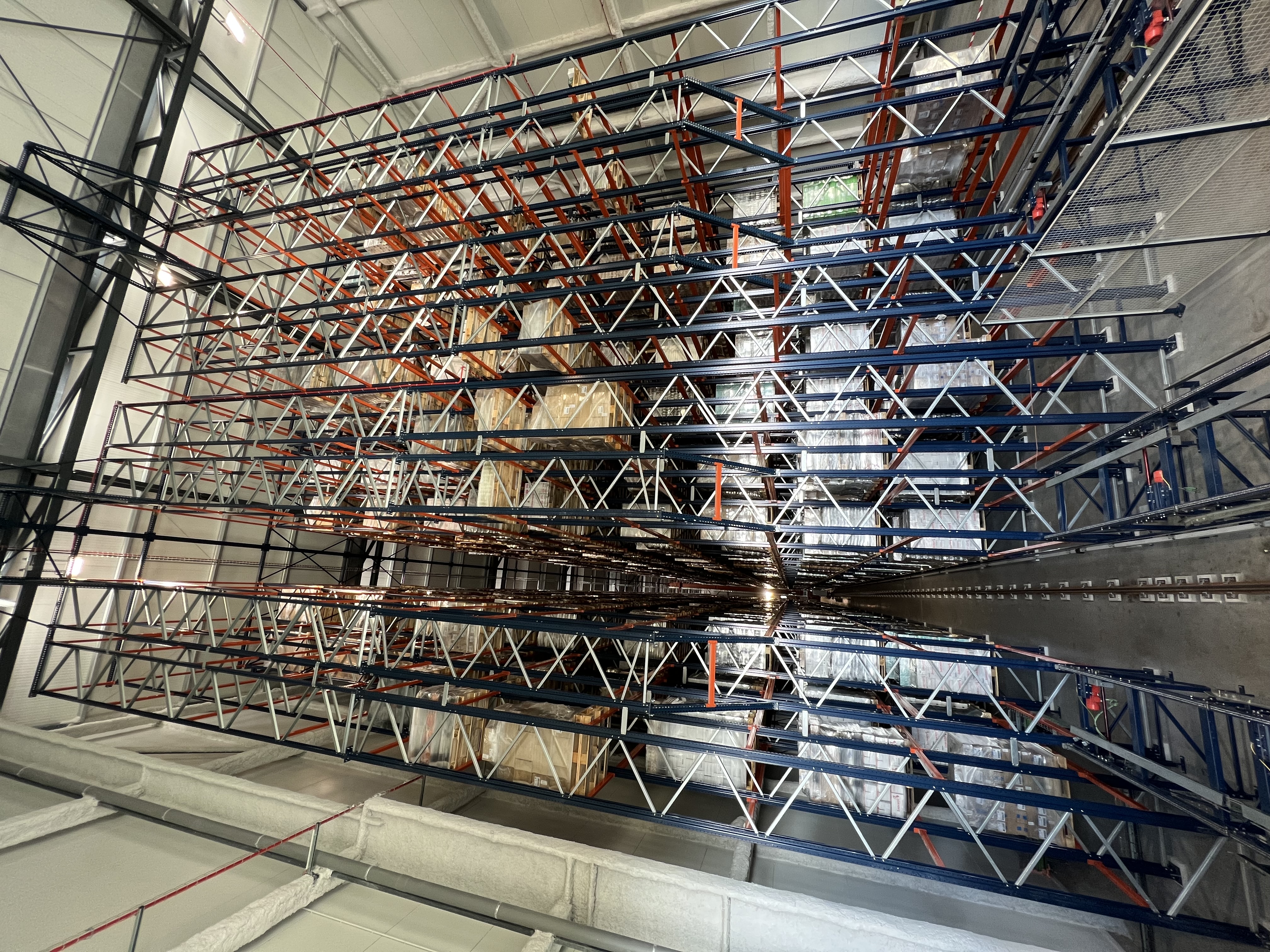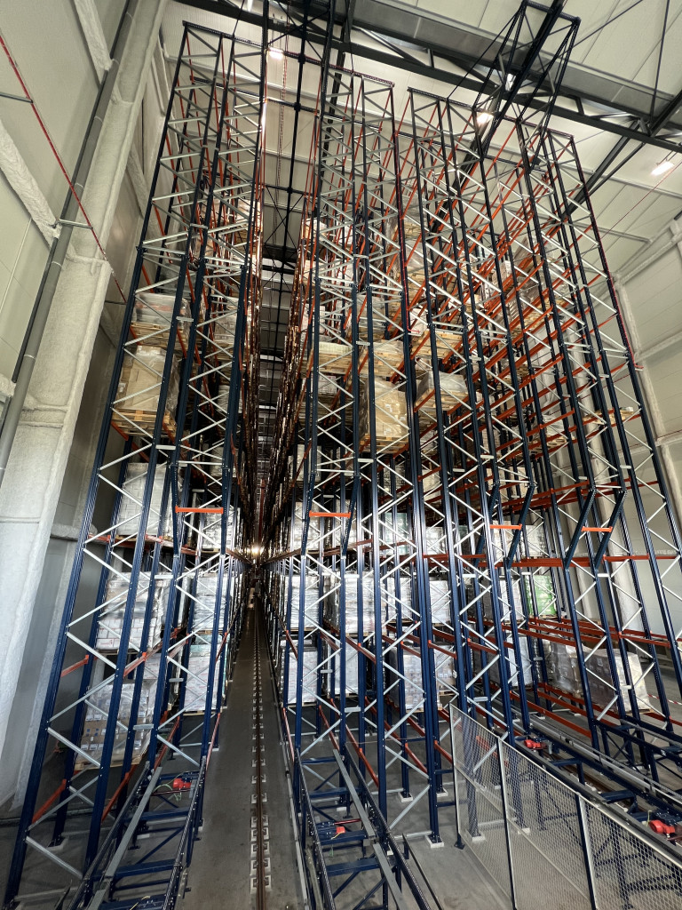 D’une capacité de 6 376 palettes grâce à des rayonnages de 21,5 m de haut, le magasin se distingue par la longueur de ses deux allées : 92 m.
