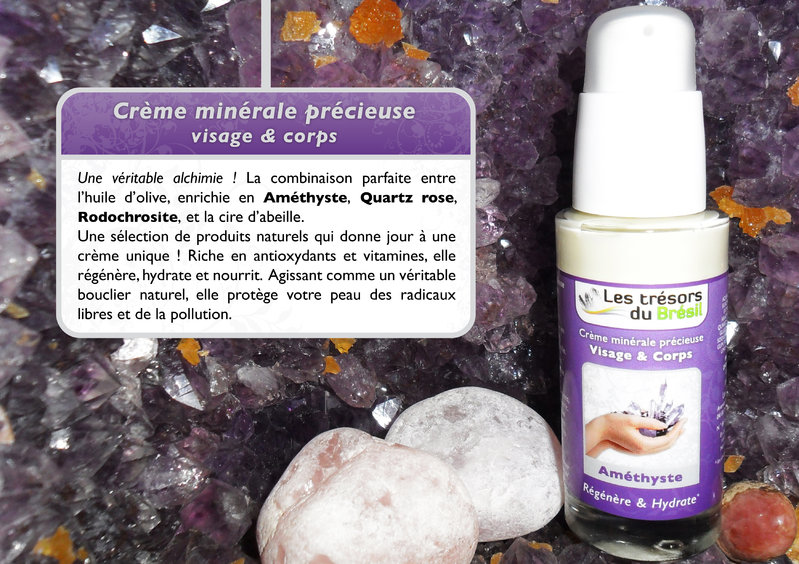 Depuis plus d’un an, les client(e)s de Trésors du Brésil ont pu essayer et approuvent les propriétés bénéfiques de la crème de minéraux d’améthyste.