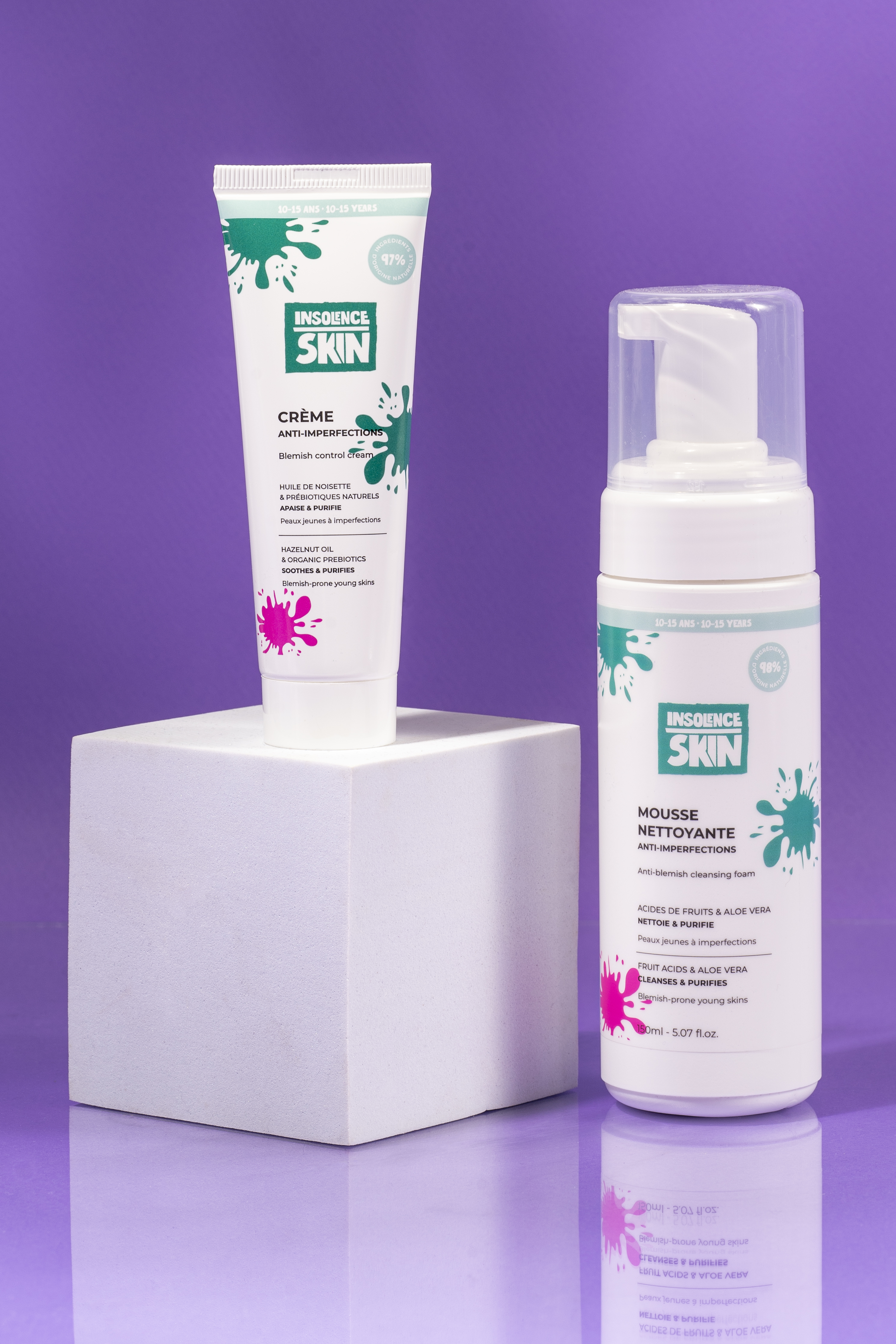 Comme tous les produits de la gamme Insolence Skin, la crème anti-perfection et la mousse nettoyante ont été développées par un expert des cosmétiques et offrent aux jeunes qualité et sécurité.