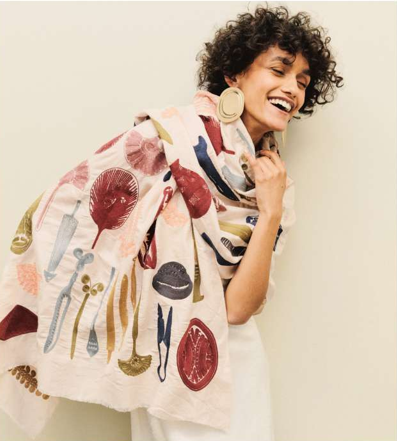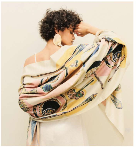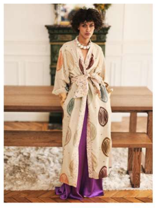 Orisha s’est aventuré au Japon, en Afrique et en Inde ; pour illustrer, imprimer et enraciner profondément la culture de ces terres dans le style. L’artisanat indien sert de fil conducteur à la collection, un cadre expressif mettant en valeur la créativité axée sur le tissage du cachemire, le Kalamkari, le Kantha et les délicates broderies à la main.
