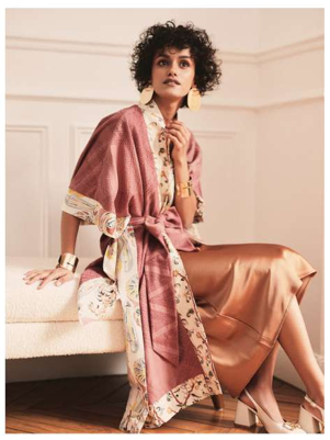 Un vent de fraicheur souffle dans les fils en cachemire de ce kimono précieux à l’allure bohème ! Une silhouette lyrique, ode à son savoir-faire d’exception : le Kantha. Les tissus se superposent tels des palimpsestes, les fils les unis tout en traçant la route vers le voyage, voie jalonnée du Kantha qui révèle le chemin de l’évasion.