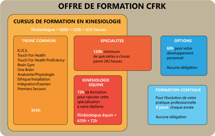 C’est d’ailleurs ce qui explique la longévité et le succès du CFRK : le Centre de Formation et de Recherche en Kinésiologie est l’un des seuls établissements à disposer d’une formation de base reconnue par les instances internationales.