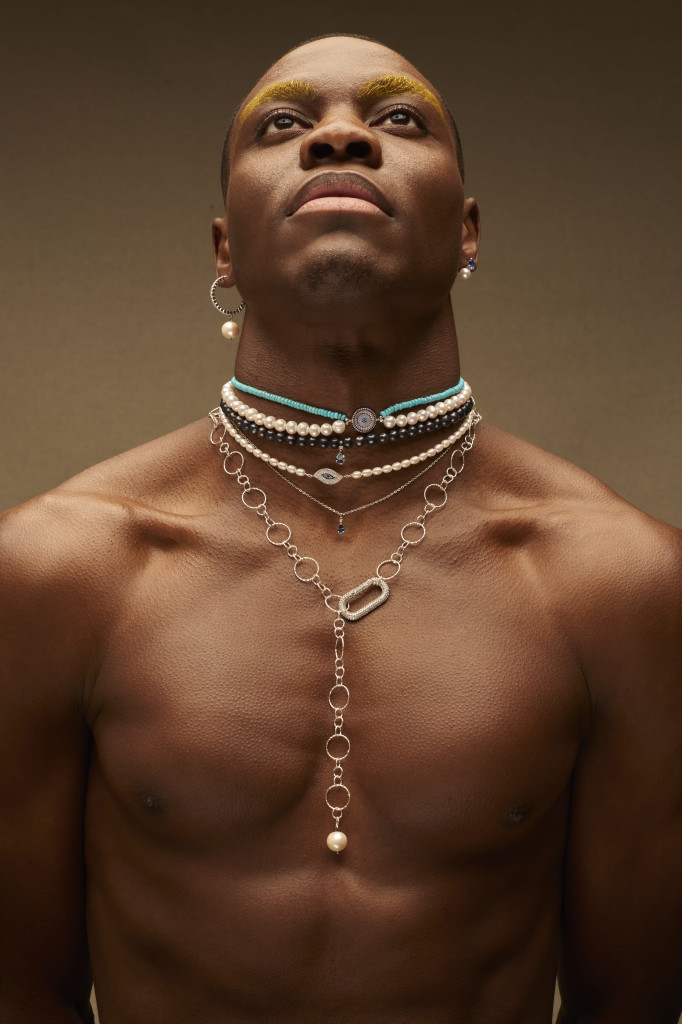 Composée de bracelets, d’un collier et de boucles d’oreilles, cette collection combine géométrie et raffinement, mettant à l’honneur les perles d’eau et les zircons.