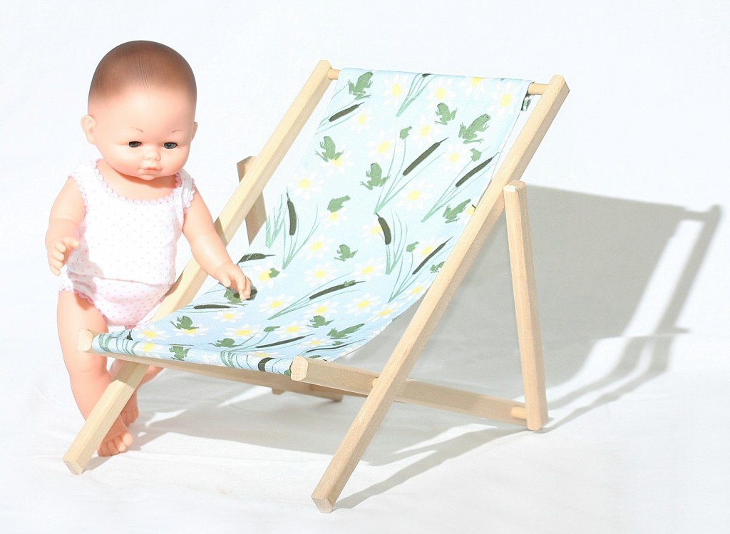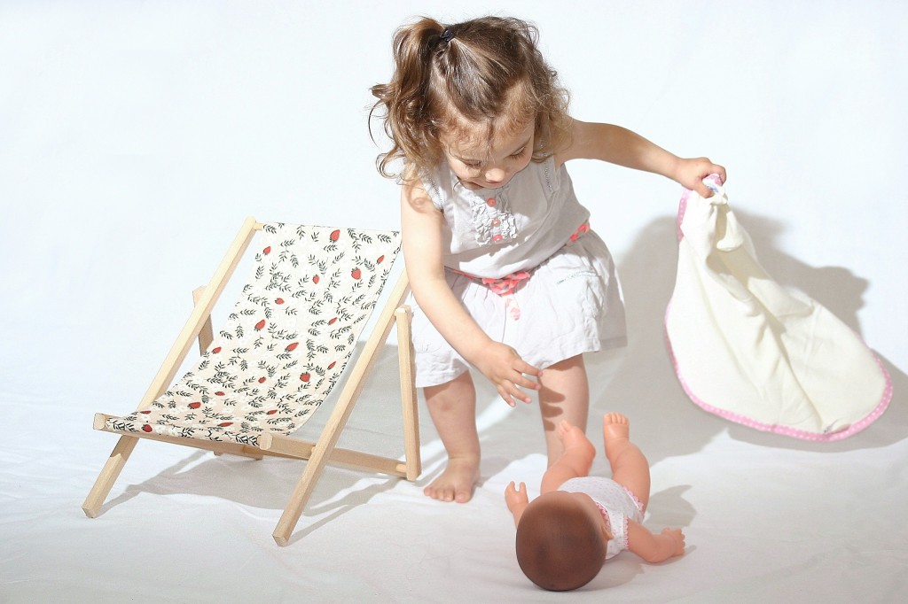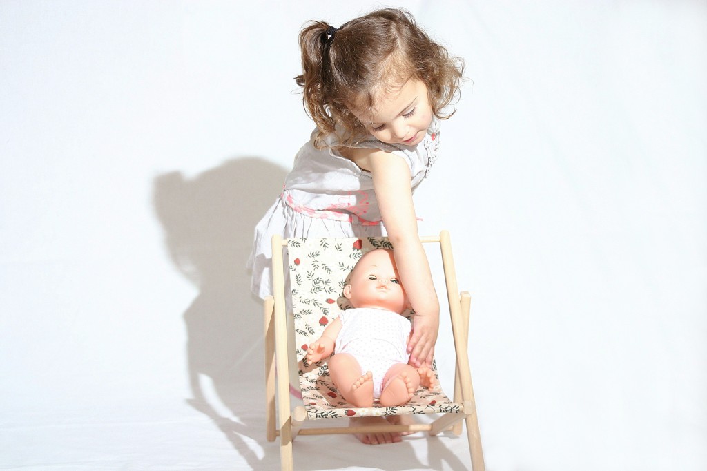 C’est en observant ma fille qui jouait à asseoir ses poupées dans les chiliennes enfant pour leur faire prendre un bain de soleil que j’ai imaginé la chaise longue version poupées. Une nouvelle création qui conserve la qualité de la chilienne en bois pour enfant.
