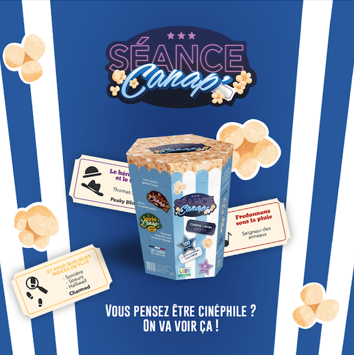 Séance Canap’ est un jeu convivial à consommer sans modération, sur la thématique du cinéma et des séries TV.