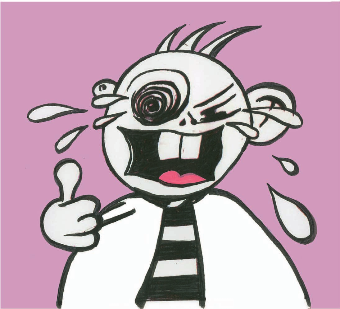 Son apparence n’a rien de sérieuse : un œil rond en tourbillons, l’autre en trait à la japonaise, une petite et une grande oreille, trois mèches de cheveux sur la tête. Mais l’éternelle cravate rayée noire et blanche qu’il porte constamment lui confère une grande classe vestimentaire !