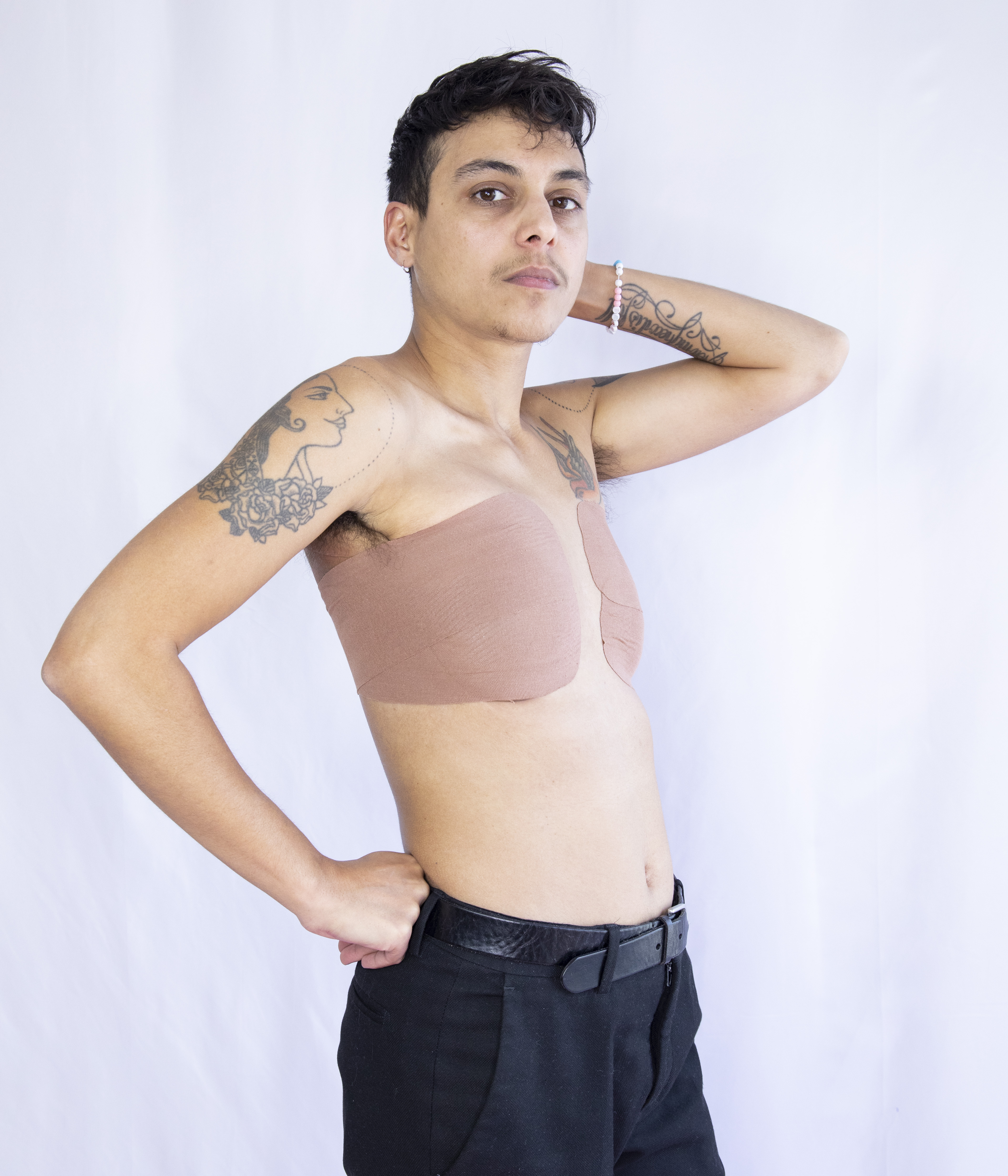Parce que toutes les personnes trans ne peuvent ou ne souhaitent pas réaliser d’opération chirurgicale, il est fondamental de leur proposer des solutions accessibles qualitatives : un binder pour avoir un torse plat, une tucking panty pour dissimuler la bosse de l’entrejambe…