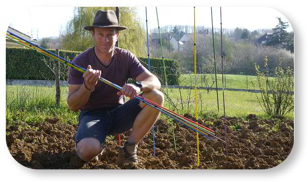 Pour en finir avec toutes ces mauvaises expériences, Michel Vernet a eu l’idée d’inventer des tuteurs résistants, pratiques, pense-bête… et décoratifs !tuteurs5
