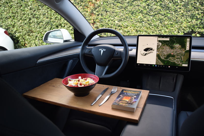 Spécialement conçu pour les Tesla Model 3 et Y, ce bureau s’intègre harmonieusement à l’intérieur de l’habitacle, du côté conducteur ou passager, pour allier design et praticité.