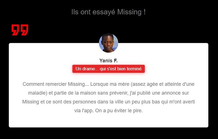 En quelques clics, il est ainsi possible de s’appuyer sur la communauté solidaire Missing et la puissance du collectif pour augmenter l’efficacité des recherches.