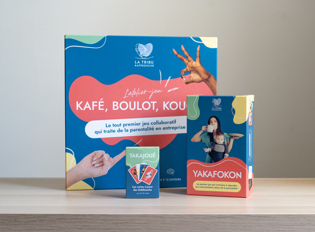 Outre le Yakafokon, La Tribu Kafékouche propose toute une gamme de jeux de société qui célèbrent et accompagnent les jeunes parents là où ils sont. Voici un aperçu de quelques-uns des autres jeux :