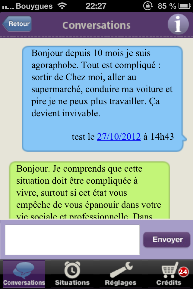- Un chat entièrement personnalisé : derrière cette application, un service humain, des Coachs, qui répondent personnellement à chaque utilisateur.