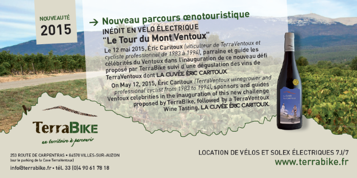 Le 12 mai prochain, c’est pourtant ce que propose de réaliser TerraBike, filiale de la cave TerraVentoux dont les activités d’oenotourisme responsable ont été récompensées par le Prix National de l’Oenotourisme en janvier 2013.