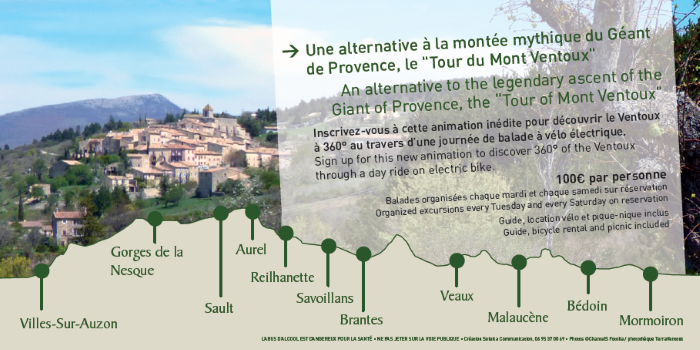 Cette nouvelle activité est une invitation à vivre un moment d’exception : le tour du géant de Provence. L’exploit est bien sûr sportif, mais TerraBike, spécialisé dans la location de vélos et de solex électriques, a souhaité apporter une autre dimension à cet événement.