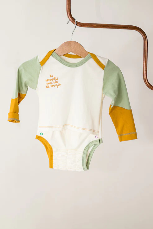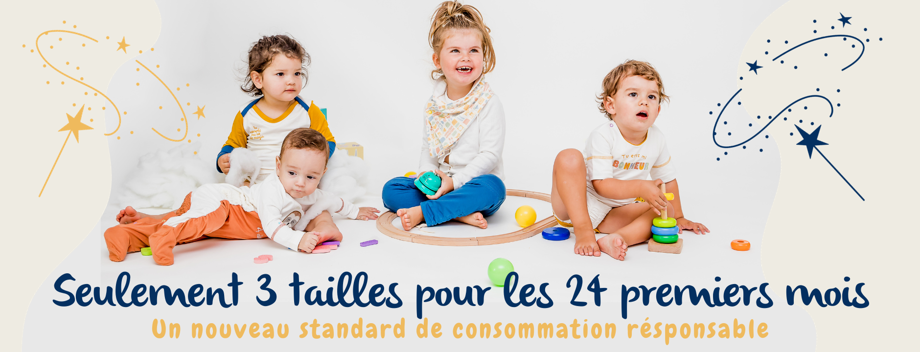 - Un durée de vie des vêtements prolongée : en évoluant avec la croissance de l’enfant, les vêtements sont utilisés sur une période bien plus longue qu’habituellement ;