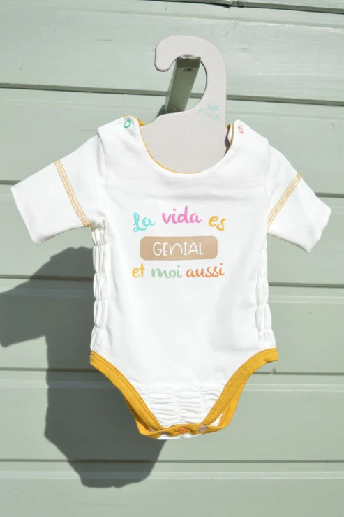 Avec sa phrase “Tu eres mi Bonheur”, ce body évoque la joie des premiers mois de vie de bébé.