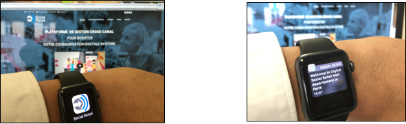 Les possesseurs d’Apple Watch peuvent recevoir des informations gérées à partir de la plateforme de convergence Social Retail®.