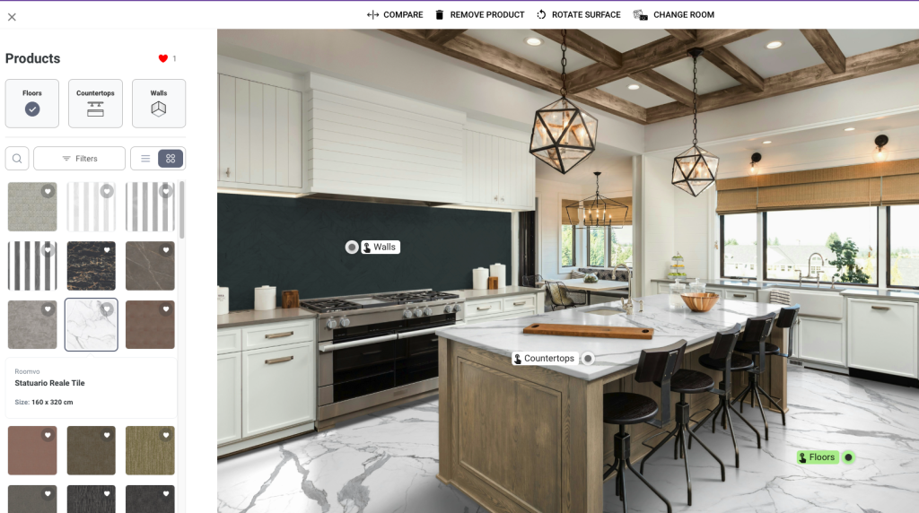 À partir d’une simple photo qu’ils téléchargeront, ils pourront choisir un matériau et une couleur, puis l’appliquer directement dans leur espace. Idéal pour visualiser facilement si le plan de travail s’intègre harmonieusement ou pas dans ce lieu de vie.