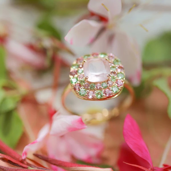 Bague en Vermeil or 18 carats, ornée de pierres fines et réalisée sur-mesure.
