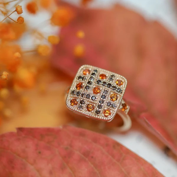 On aime le look rétro chic de cette bague graphique en vermeil. Son motif en damier superposé d’un duo de pierres fines, le tout serti millegrain, n’est pas sans rappeler le Tweed, ce fameux tissu rendu célèbre notamment par une maison de haute couture Française de renommée.