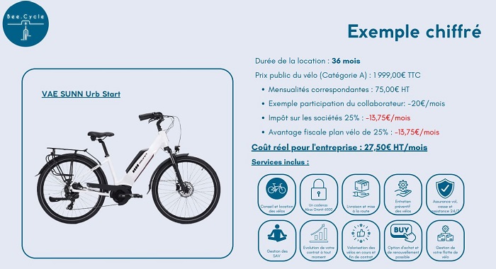 La jeune pousse offre ainsi le cadenas, la livraison et la mise en route, l’entretien préventif des vélos, l’assurance vol et casse, l’assistance 24h/24 et 7j/7, la gestion du SAV, la gestion de la flotte de vélos, l’évolution du contrat à tout moment, etc.
