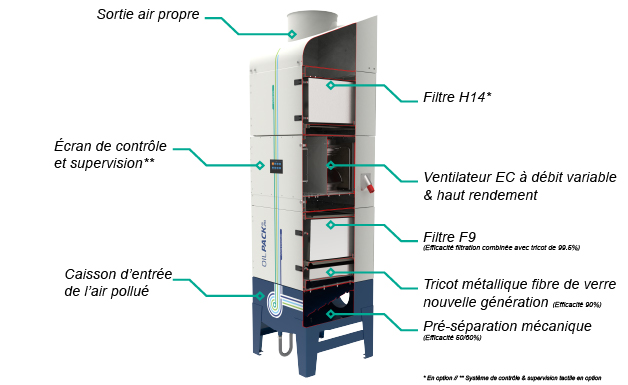 Pour répondre aux besoins des industriels, la nouvelle gamme Oilpack répond à un niveau de filtration de ces particules d’huile avec une grande efficacité.