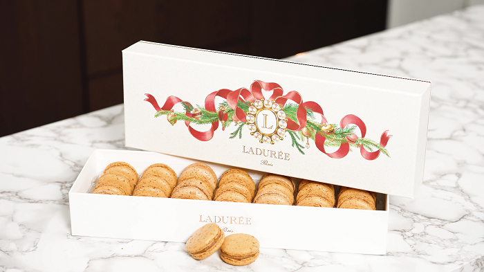 Les incontournables macarons qui ont fait la réputation de la maison Ladurée ! Constitués d’une élégante coque à la texture fondante, ils renferment une crème régressive et réconfortante aux notes chaleureuses et épicées de biscuit spéculoos.