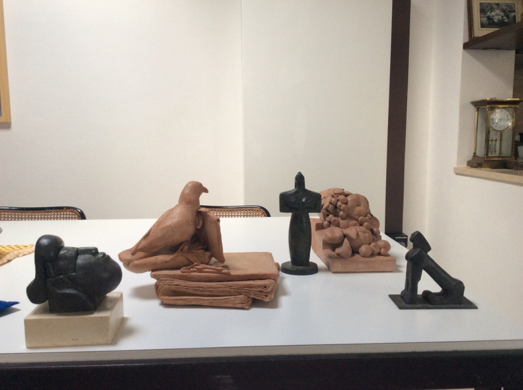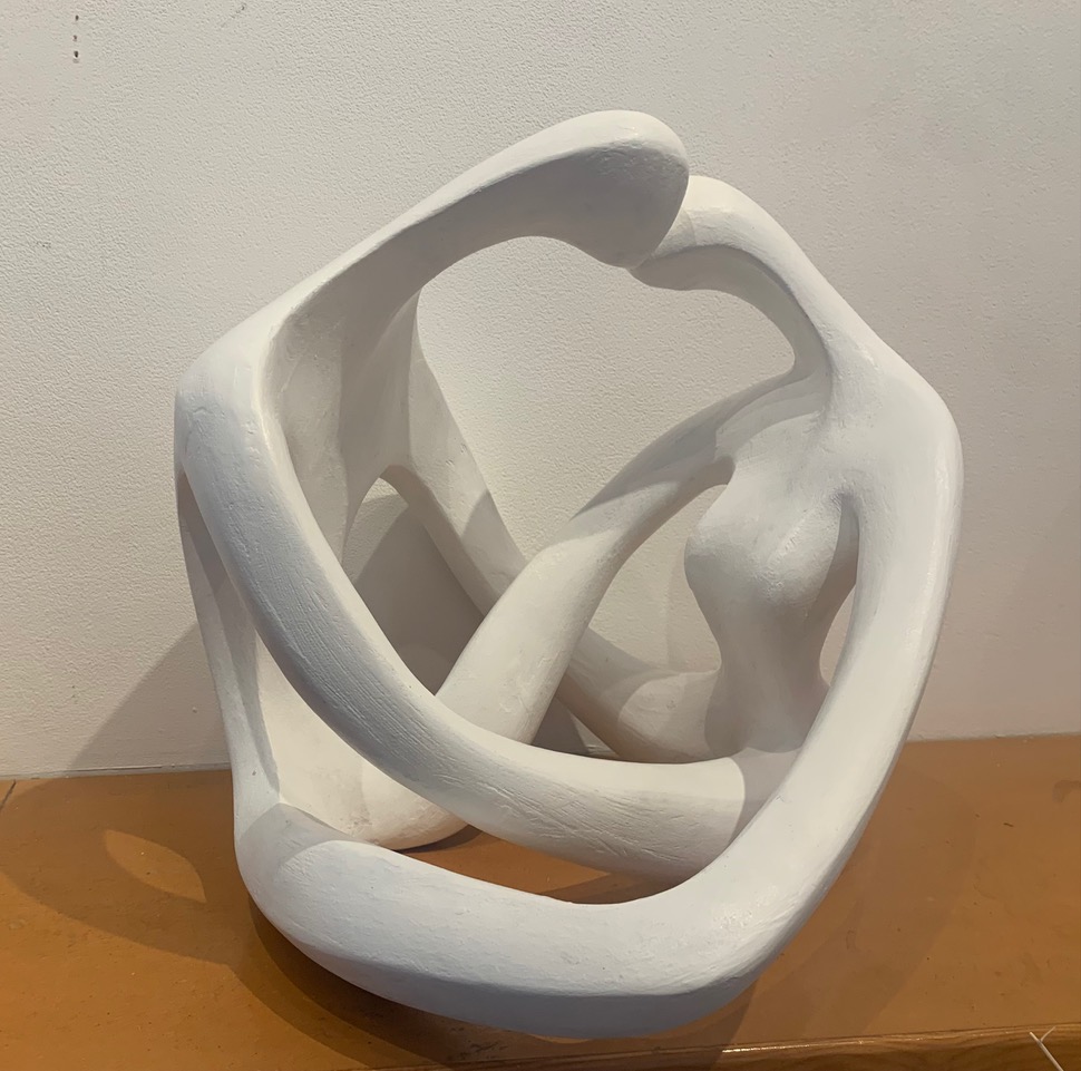 Le talent tutélaire de Pietro Cascella, (1921-2008), grand maître sculpteur, dont l’œuvre en marbre, en pierre et en bronze se caractérise par des volumes aux lignes cubistes ou des éléments de purisme géométriques, est aussi présent dans l’exposition par une sélection de quelques œuvres intimes. Quant à Daniel Milhaud, (1930-2014) présent à la Galerie ORENDA grâce à son épouse Nadine, il apparaît rétrospectivement comme un créateur d’avant-garde ayant expérimenté de nombreuses matières au fil de sa vie : papier mâché, pierre, métal /…/ Trois de ses sculptures monumentales sont installées dans la Ville de Bobigny, ainsi qu’une fontaine place des Grès dans le 20ème arrondissement de Paris.