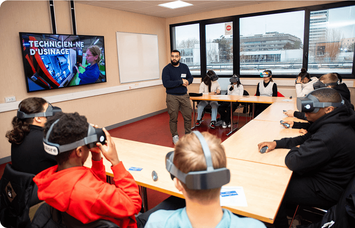 Rendus concrets grâce à l’immersion en réalité virtuelle, les ateliers sont riches en moments d’approfondissement pour découvrir les multiples facettes de chaque métier : les enjeux d’un secteur, la posture professionnelle, les conditions de travail, travail sur les stéréotypes.