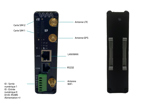- Une connectivité polyvalente : EasyRouter est équipé d’un ensemble d’interfaces (notamment RS232, RS485, double SIM, E/S numériques, Ethernet gigabit, GPS et Wifi), la garantie d’une connectivité transparente à destination d’une grande variété d’appareils et d’applications ;