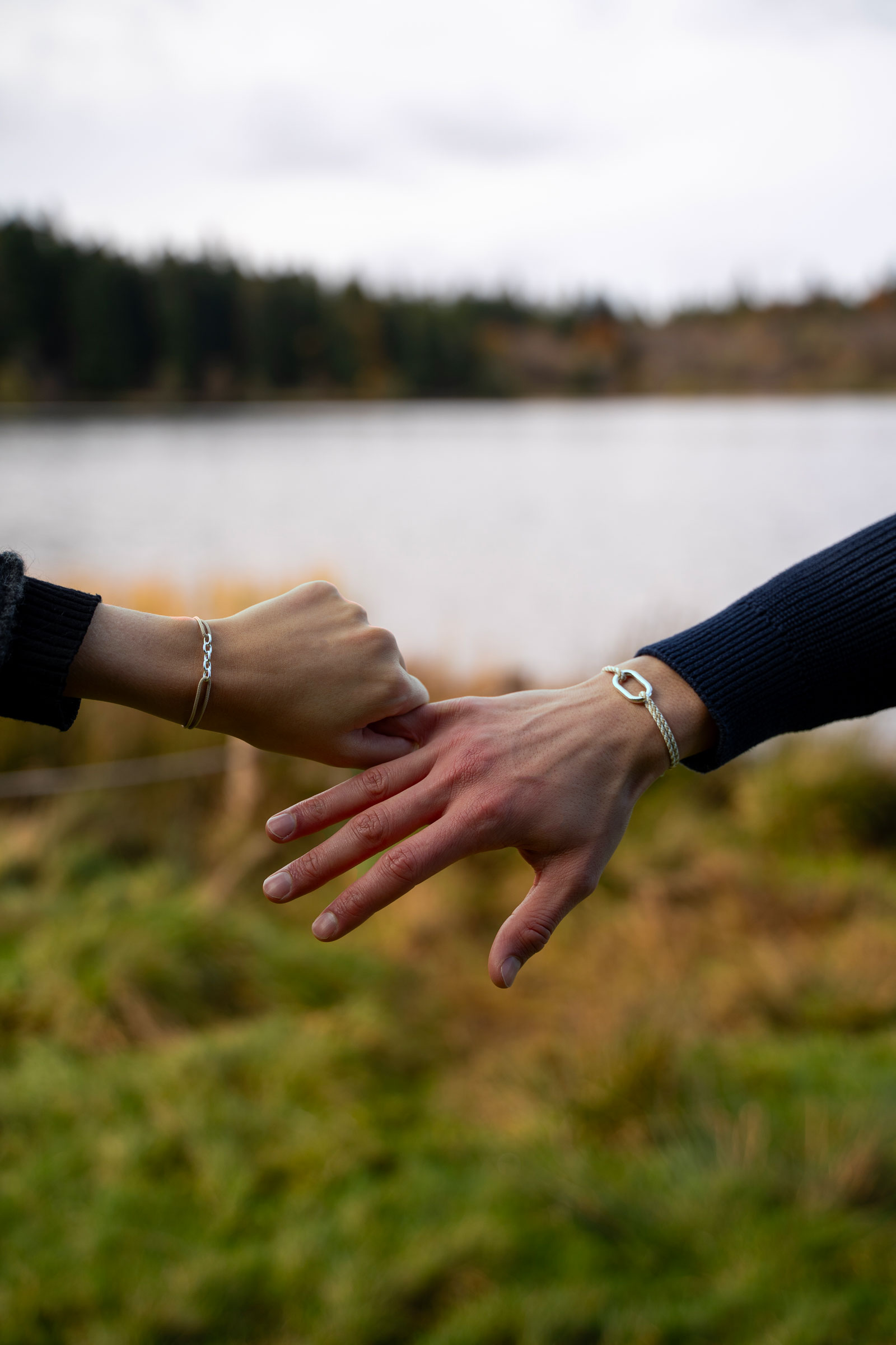 Ce duo de bracelets Hune et Rive, aux finitions plaquées argent, accompagnera ses heureux propriétaires tout au long de leurs vies.
