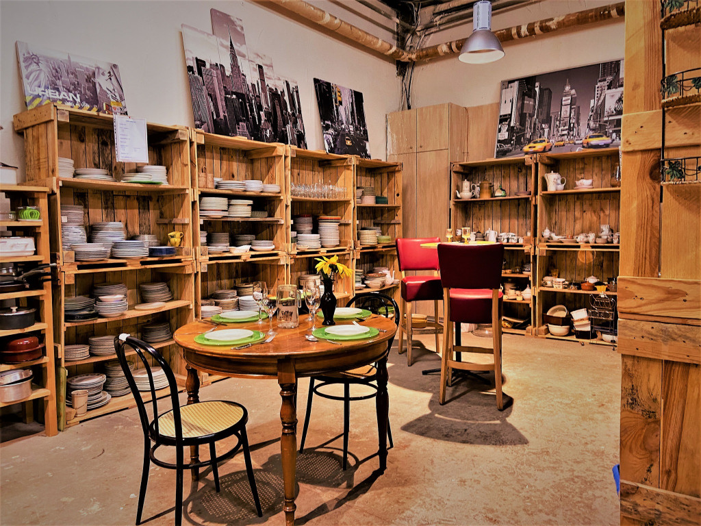 Réuni au sein d’un seul et même endroit, un large choix d’articles du quotidien, uniques et renouvelés (livres, jouets, vélos, meubles, objets de décoration, électroménager, plantes, mobilier de jardin), sont minutieusement triés et réparés au besoin.