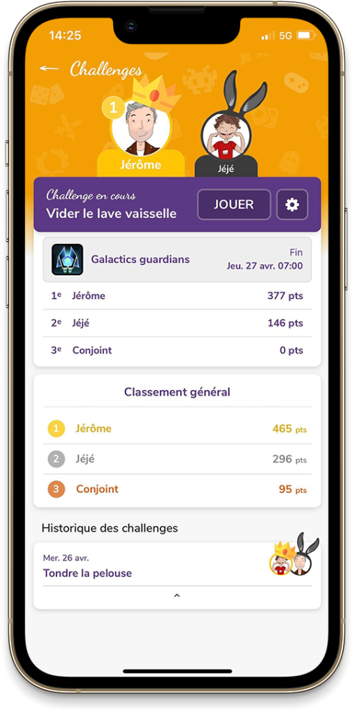 - Système de gaming : il attribue des points aux enfants pour les motiver à participer aux tâches ;