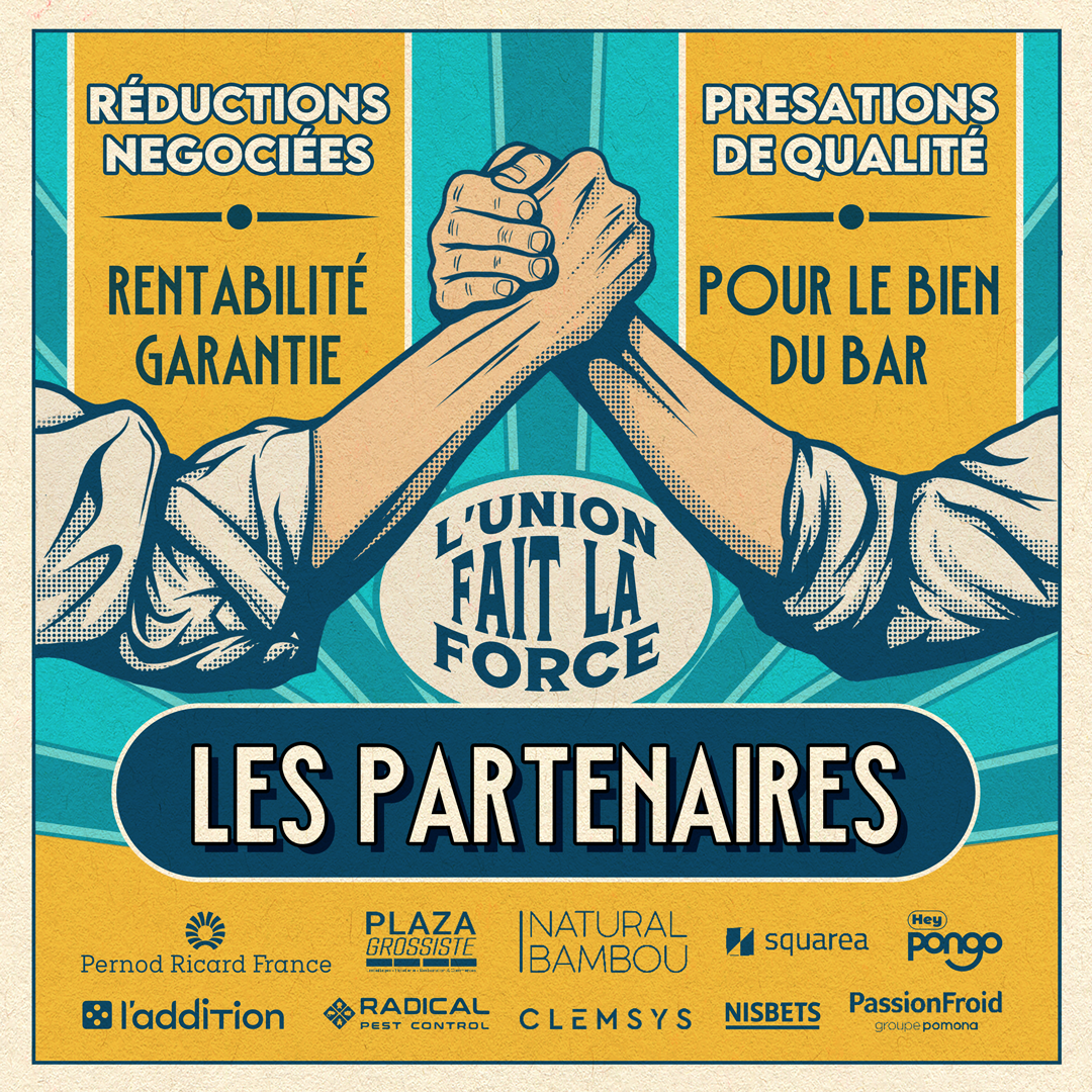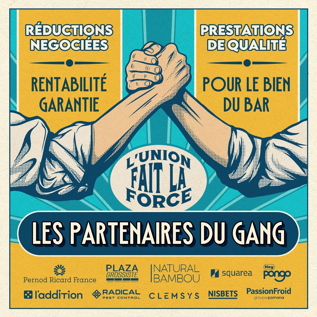 Le Gang des Taverniers s’attache à instaurer de nombreux partenariats avec des prestataires afin de proposer des réductions avantageuses à ses membres : Pernod Ricard, Passion Froid, Terre Azur, Squarea, HeyPongo, Plaza Grossiste, Natural Bambou, Clemsys, l’Addition, etc.