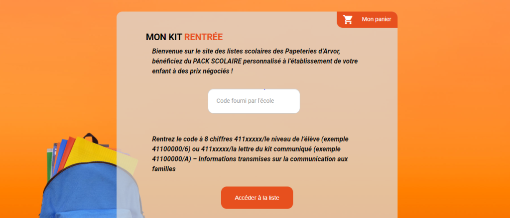 Ensuite, les parents renseignent le code fourni par l’école sur le site MonKitRentree.fr et profite d’un accès personnalisé aux listes scolaires de leur établissement.