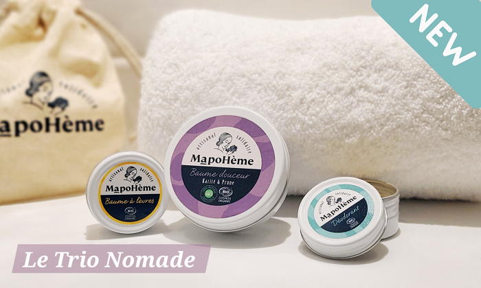 Et tous les baumes et déodorants de la marque sont conçus à partir de matières premières de grande qualité. Elles sont notamment certifiées bio et aussi équitables lorsqu’elles ne proviennent pas de France (huile de coco, beurre de karité). MapoHème utilise également des huiles encore méconnues, mais exceptionnelles en cosmétique, comme l’huile de prune.