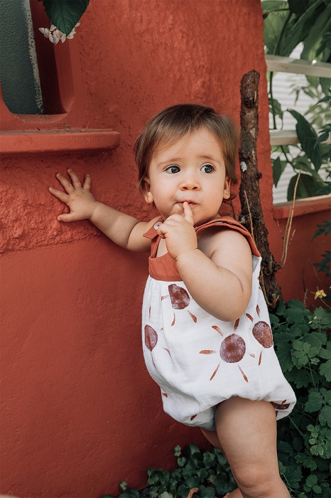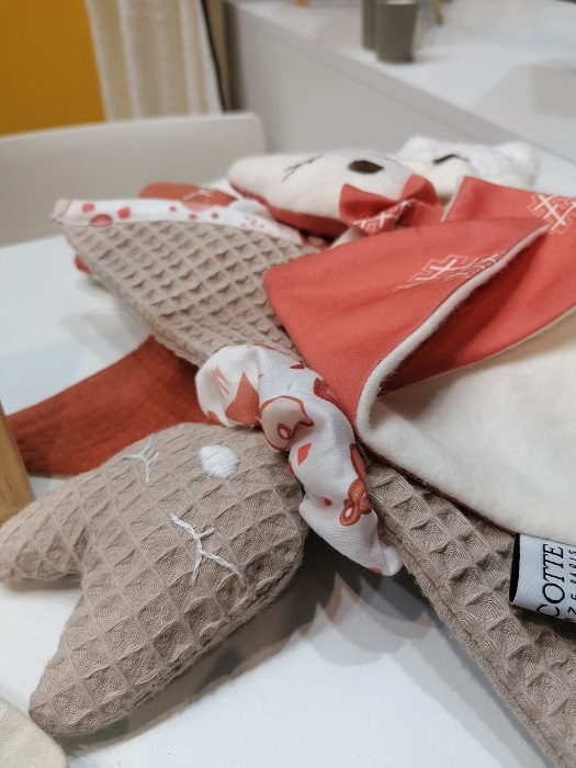 Après la naissance de ses loulous en 2017 et 2019, elle a eu envie de créer quelque chose de différent de ce qu’on pouvait voir sur les marques bébés et enfants. D’ailleurs, parce qu’elle a fait des accompagnements post-partum, avec enseignement du portage en écharpe et du massage néonatal, elle se sent particulièrement attirée par l’univers de l’enfance.