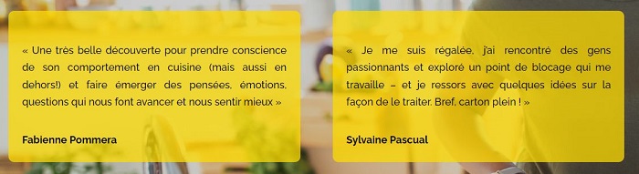 • L’utilisation des ingrédients comme un langage métaphorique (un peu comme la palette d’un peintre) pour explorer ses émotions et ses modes de fonctionnement ;