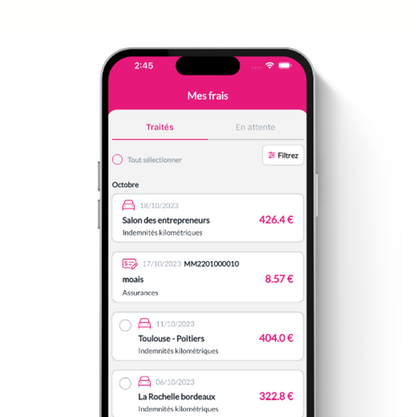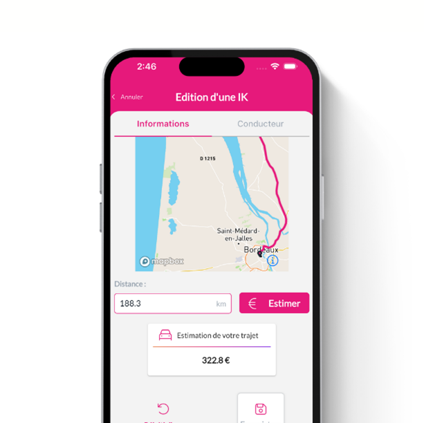 L’application met automatiquement à jour les nouveaux barèmes fiscaux et l’utilisateur accède à un historique complet de tous ses déplacements professionnels et des indémnités kilométriques associées.