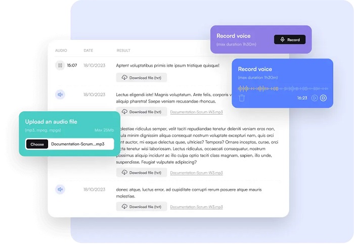 De plus, si l’entreprise possède un fichier audio, elle peut aussi l’ajouter dans l’application pour obtenir sa transcription.