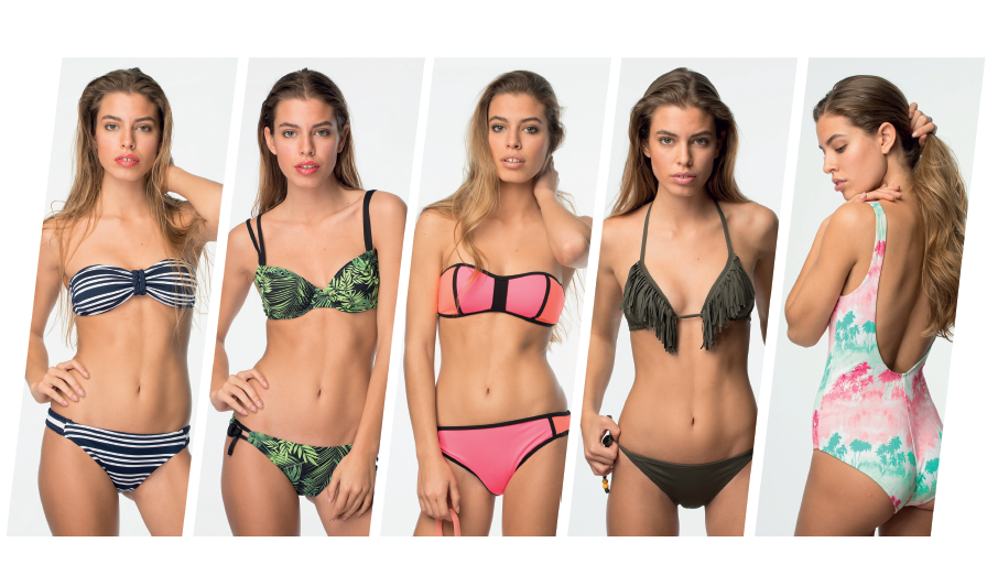 Pour l’été 2015, nous proposons, outre nos modèles classiques et indémodables, de nouveaux imprimés avec des motifs animaliers ou floraux et des rayures multicolores, mais aussi une plus grande variété de culottes brésiliennes et de nouveaux soutiens-gorges bandeau à volants ou au style plus sportif.