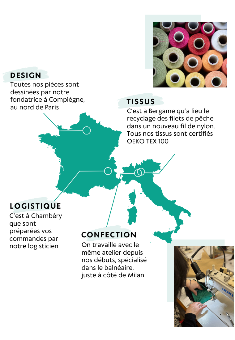 Les Alcyonides Swimwear s’inscrit ainsi dans une démarche de circuit ultra-court, avec un parcours de moins de 400 km du recyclage à la livraison, et réaffirmant son engagement écologique.