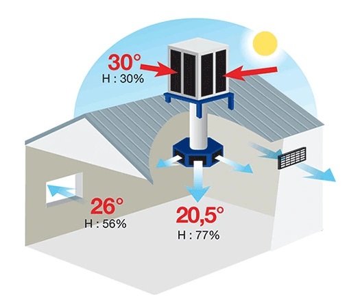 Amélioration de la qualité de l’air intérieur. La climatisation par évaporation permet de respirer en permanence un air frais venu de l’extérieur.