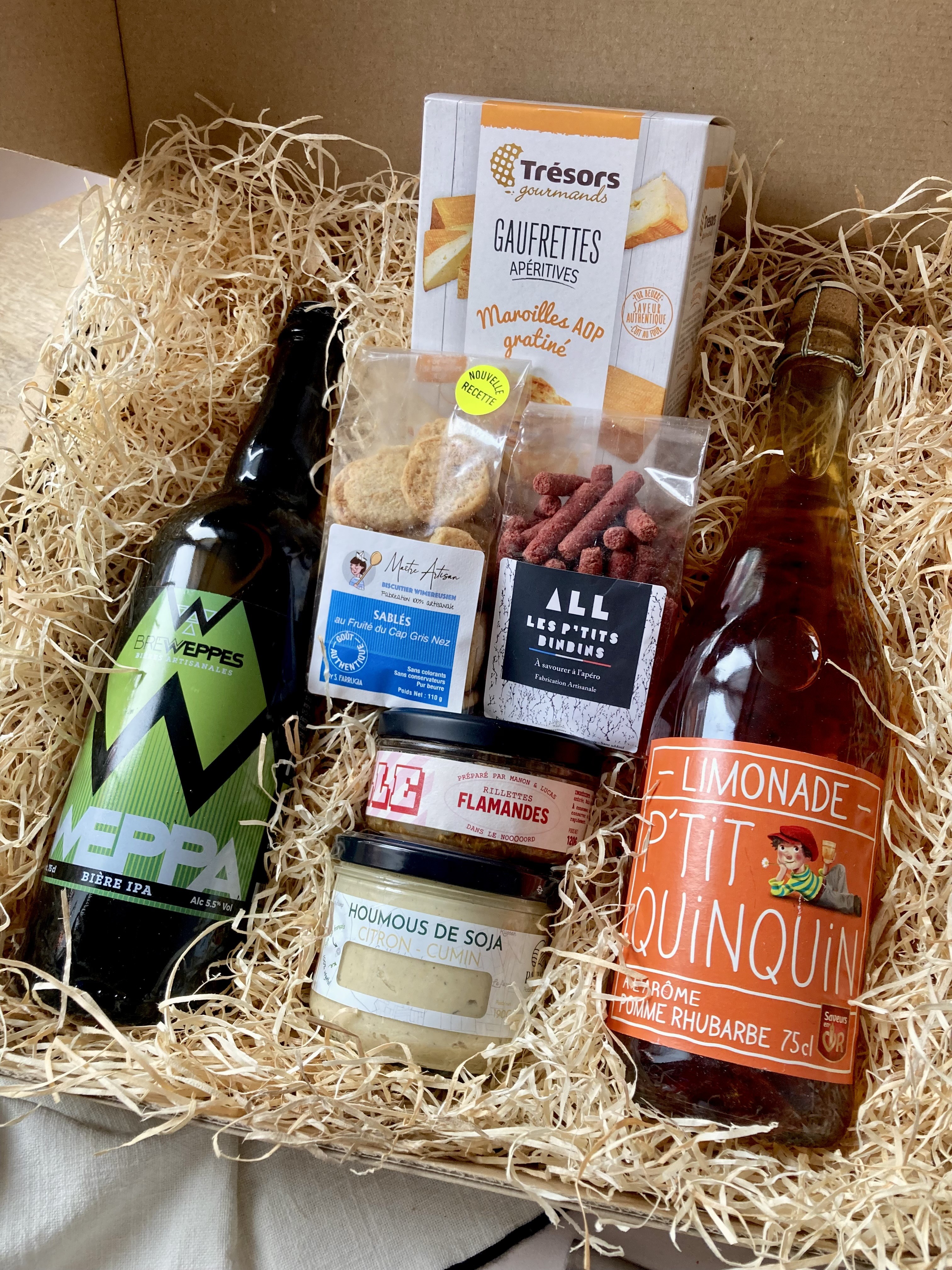 Pour un apéro réussi, rien de tel que la Box gourmande. Une sélection de produits locaux du Nord pour se régaler entre amis ou en famille. De la bière artisanale, des sablés au fromage du Nord et des tartinades gourmandes. Avec ce coffret cadeau re-découvre les incontournables de l’apéro. Des produits de qualité, artisanaux, bio.