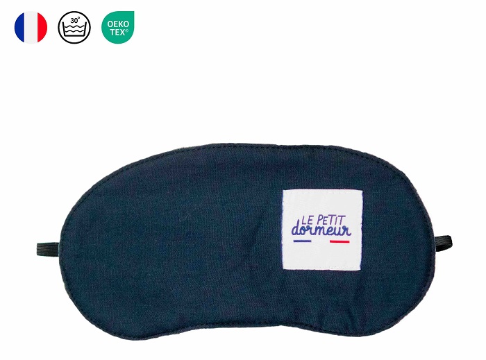 Le kit contient le coussin et le masque Le Petit Dormeur. Il est disponible en couleur unie (bleu marine, thym, framboise, bleu clair) ou en version marinière (bleu, noir, rouge).