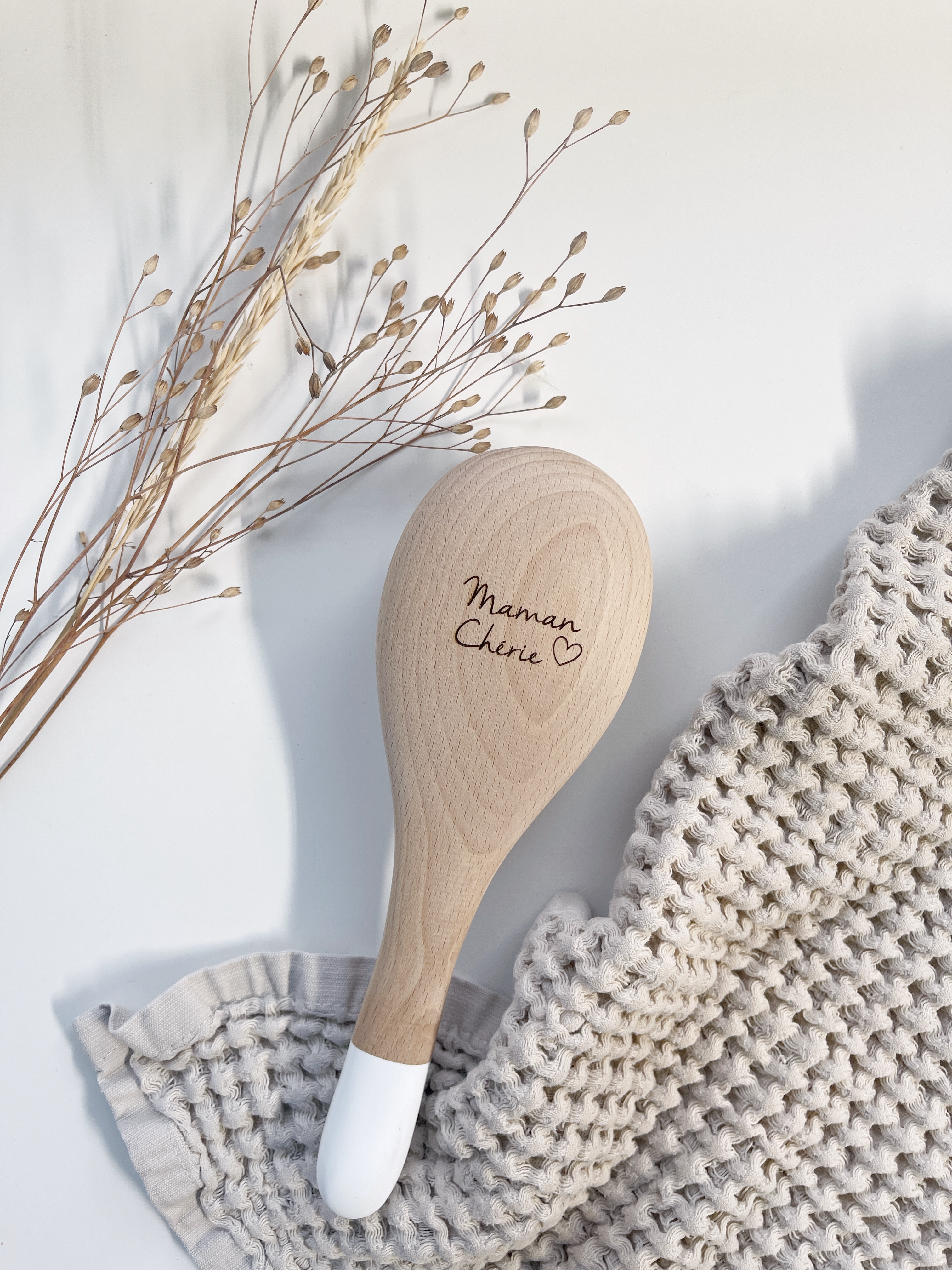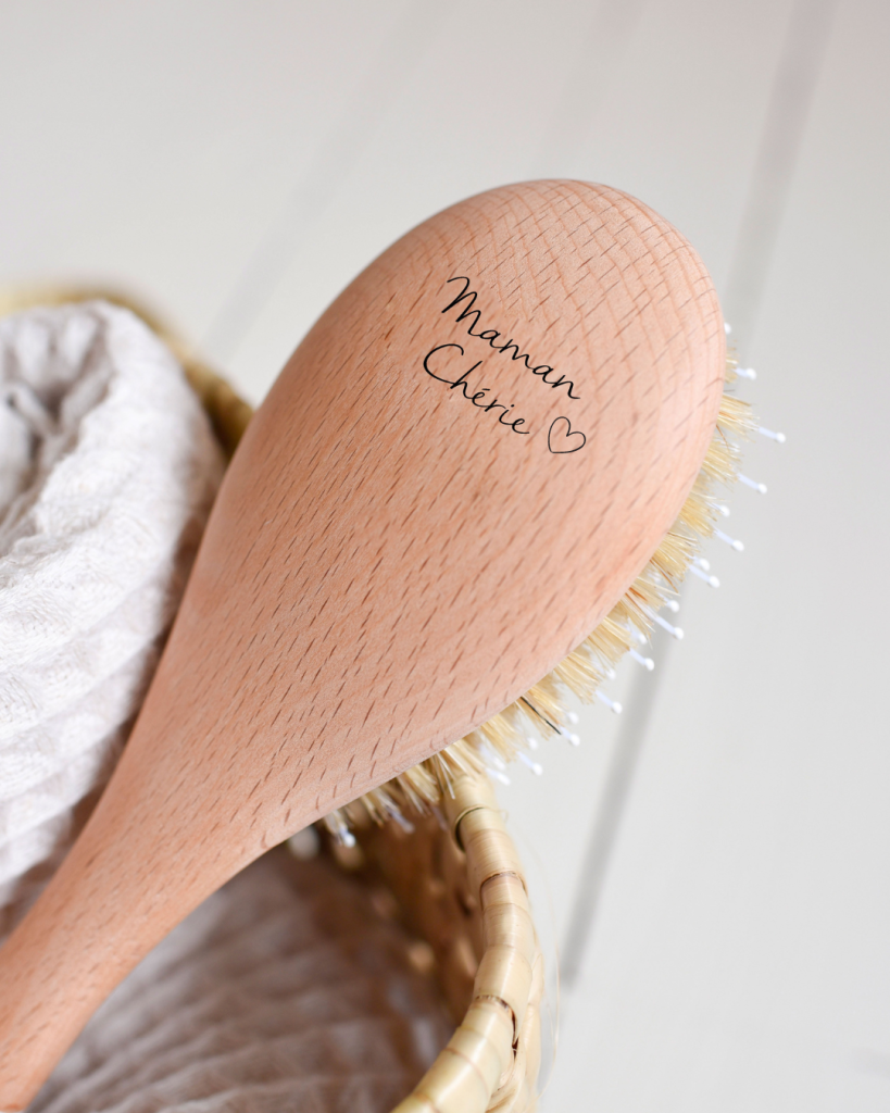 Brosse en bois de hêtre personnalisée Bachca, gravée à la main à Nantes,