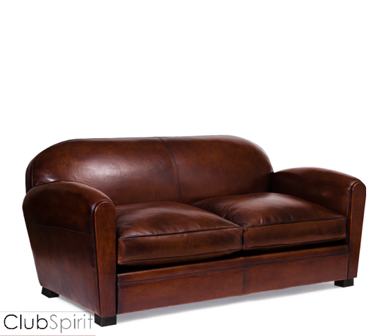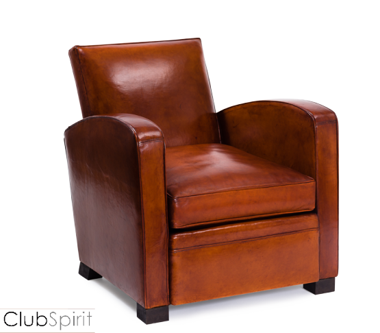 Canapé Club s’inspirant du fauteuil dessiné en 1938 par Rulhmann pour un salon fumoir du transatlantique du même nom.