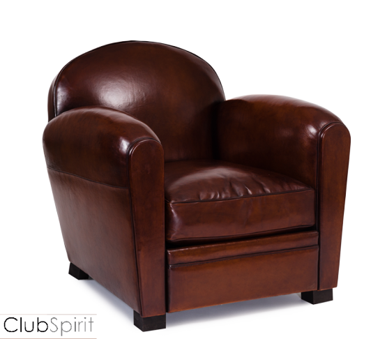Fauteuil Club s’inspirant du modèle dessiné en 1938 par Rulhmann pour un salon fumoir du transatlantique du même nom.