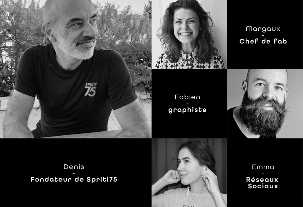 En parallèle, Denis partage son expertise en enseignant le graphisme dans diverses écoles d’arts appliqués, un chapitre de sa vie qu’il clôture en 2022 pour se consacrer entièrement à Spirit 75.
